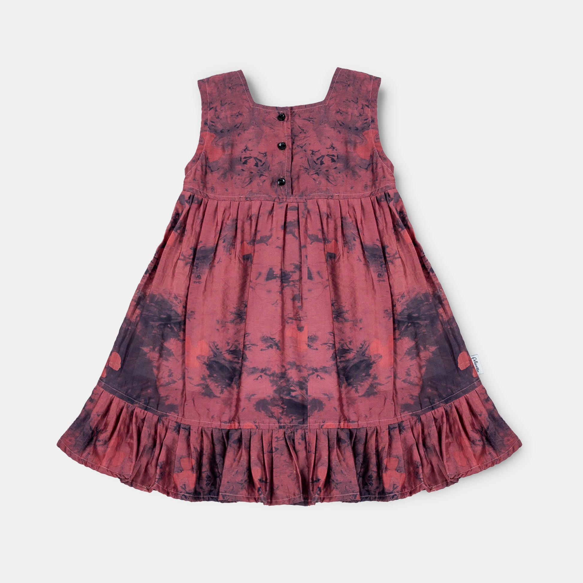 This elegant sleeveless dress is crafted from luxurious chanderi silk, featuring soft gathers. A striking contrast hem along the neckline adds a modern touch. Perfect for special occasions or festive celebrations, this dress is a blend of tradition and modern elegance, making your little one shine effortlessly.